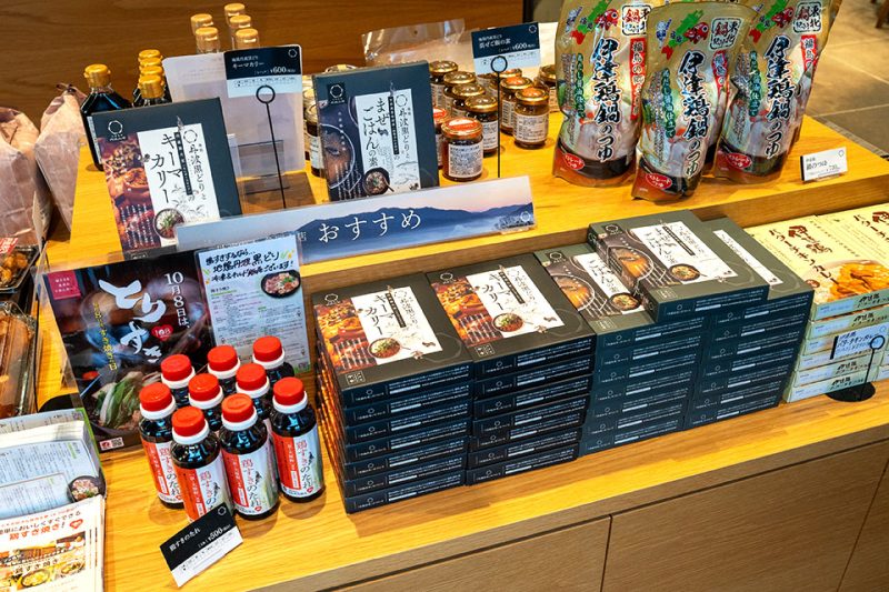 レストランに併設するショップには、丹波黒どり・丹波赤どりの精肉や加工品をはじめ、丹波米など地元・亀岡の食材が並びます。一般の量販店では手に入らない商品も多く、ここでしか購入できない限定品も充実。