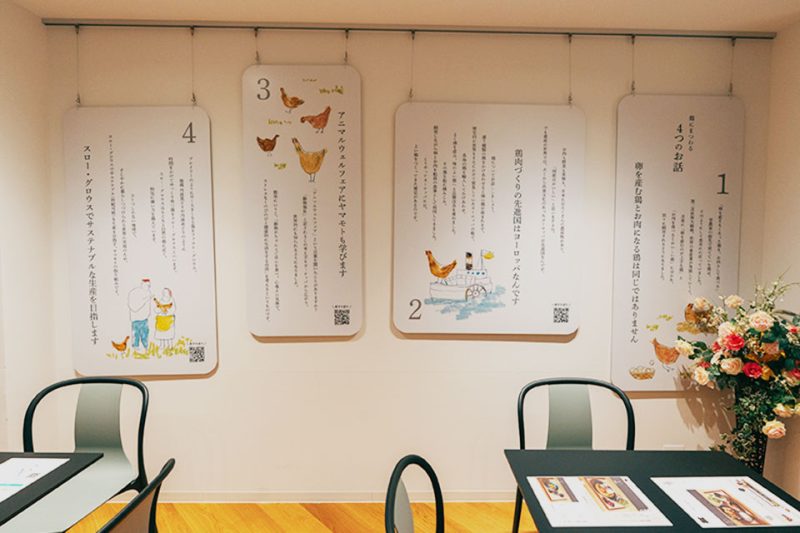 2階には、「なぜこの鶏は美味しいのか」「どのような想いで育てられてきたのか」。