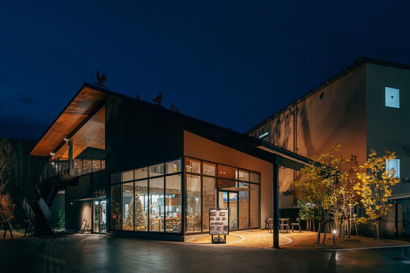 屋根の上にずらりと並ぶ、赤い鶏のモチーフ。思わず足を止めて見上げたくなる建物が、2024年7月に京都・亀岡でオープンした「丹波山本亀岡本店」です。運営するのは、京都で90年以上にわたり養鶏産業に携わってきた株式会社ヤマモト。雛の育成から飼育、加工、流通までを一貫して行う“トータル養鶏”を強みとし、長年にわたり京都の食を支えてきました。この亀岡本店は、これまで主に事業者向けに展開してきた取り組みを、一般の方へ直接伝える初めての情報発信拠点。「鶏のおいしさを、もっとまっすぐに伝えたい」—そんな想いから生まれたこの場所には、レストラン、ショップ、ギャラリーが併設され、「食べる、知る、持ち帰る」を通して、鶏の魅力を体験できる工夫が随所にちりばめられています。なぜ、丹波山本が手がける鶏は特別なのか。その背景と味わいを確かめに、丹波山本亀岡本店「鶏と亀」を訪ねました。