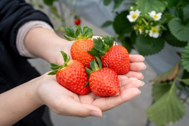 栽培されているのは、「紅ほっぺ」「かおり野」「ほしうらら」「恋みのり」の4品種。時期によって食べ比べができるのも魅力のひとつです。